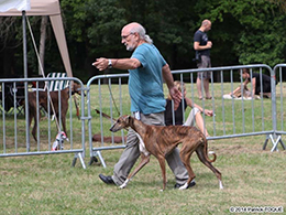 | Commentaires du juge: Bien dans le type - D'un format un peu trop long - Exc tête qui pourrait être un peu plus ciselée - Exc oreilles , encolure - DCC - 3ème paupière - Exc dessus, dessous - Exc AV et AR - Exc fouet - Exc mouvements | ||||